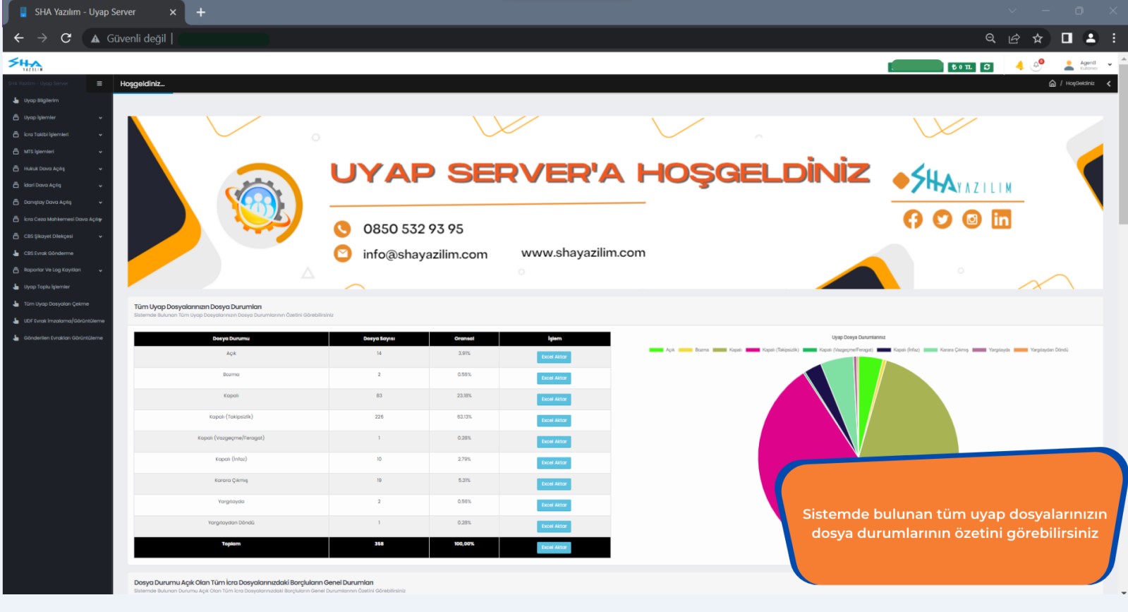 Uyap Server, Bilgisayarınıza takılı e-imza ile Uyap Avukat Portal’a bağlanarak taraf olduğunuz Uyap dosyalarında işlem yapmanızı sağlayan SHA yazılım tarafından geliştirilmiş yapay zekâ ürünü bir programdır.